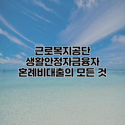 근로복지공단 생활안정자금융자 혼례비대출의 모든 것