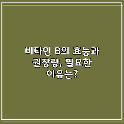 비타민 B는 우리 몸에 필수적인 영양소 중 하나로, 건강 유지와 다양한 기능 수행에 중요한 역할을 하고 있어요. 우리의 에너지 생산과 뇌 기능에 큰 영향을 미치는 비타민 B의 중요성을 놓쳐서는 안됩니다! 이제 비타민 B의 효능, 권장량, 그리고 우리가 어떻게 이를 섭취할 수 있는지를 자세히 알아보도록 해요.