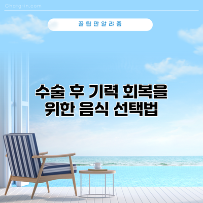 수술은 신체에 많은 부담을 주는 과정입니다. 그래서 수술 후에는 기력을 회복하고 건강을 되찾기 위한 적절한 영양 섭취가 필수적이에요. 특히, 어떤 음식을 선택하느냐가 회복에 매우 큰 영향을 미치기 때문에 올바른 음식을 선택하는 것이 중요합니다.