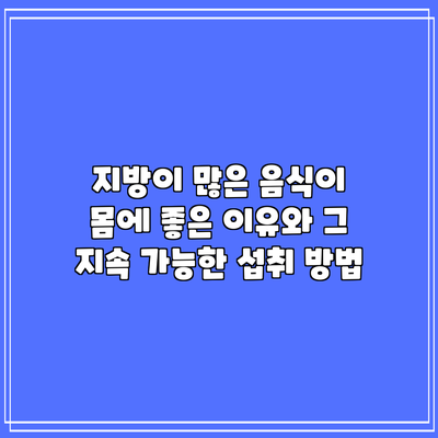 지방이 많은 음식이 몸에 좋은 이유와 그 지속 가능한 섭취 방법