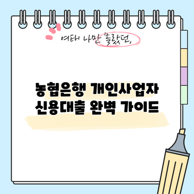 농협은행 개인사업자 신용대출 완벽 가이드