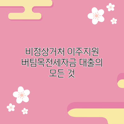 비정상거처 이주지원 버팀목전세자금 대출의 모든 것