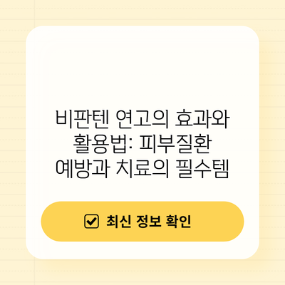 비판텐 연고는 다양한 피부질환의 예방과 치료에 효과적이에요. 아래에서 그 활용법에 대해서 더 자세히 설명해드릴게요.