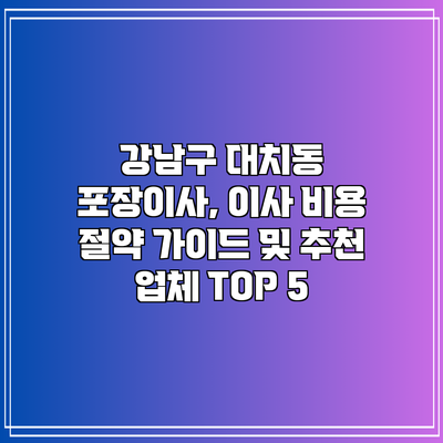 강남구 대치동 포장이사, 이사 비용 절약 가이드 및 추천 업체 TOP 5