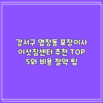 강서구 염창동 포장이사 이삿짐센터 추천 TOP 5와 비용 절약 팁