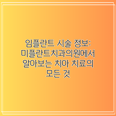임플란트 시술 정보: 미플란트치과의원에서 알아보는 치아 치료의 모든 것