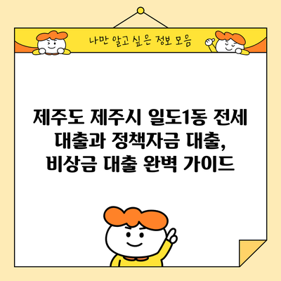 제주도 제주시 일도1동 전세 대출과 정책자금 대출, 비상금 대출 완벽 가이드
