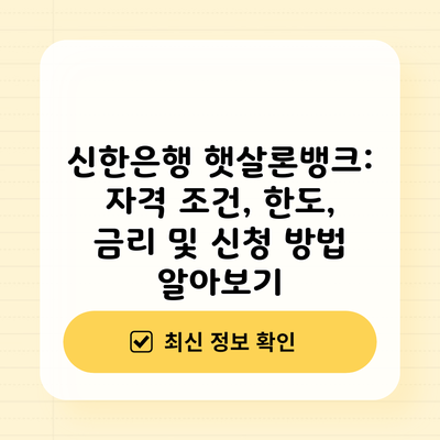 신한은행 햇살론뱅크: 자격 조건, 한도, 금리 및 신청 방법 알아보기