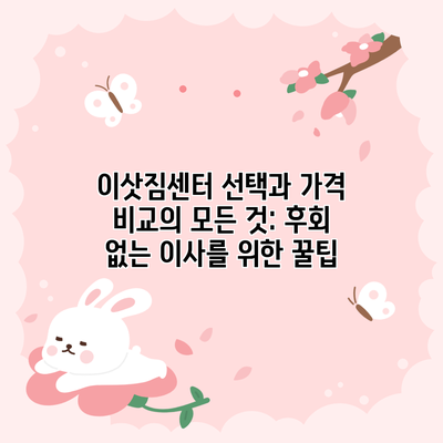 이삿짐센터 선택과 가격 비교의 모든 것: 후회 없는 이사를 위한 꿀팁
